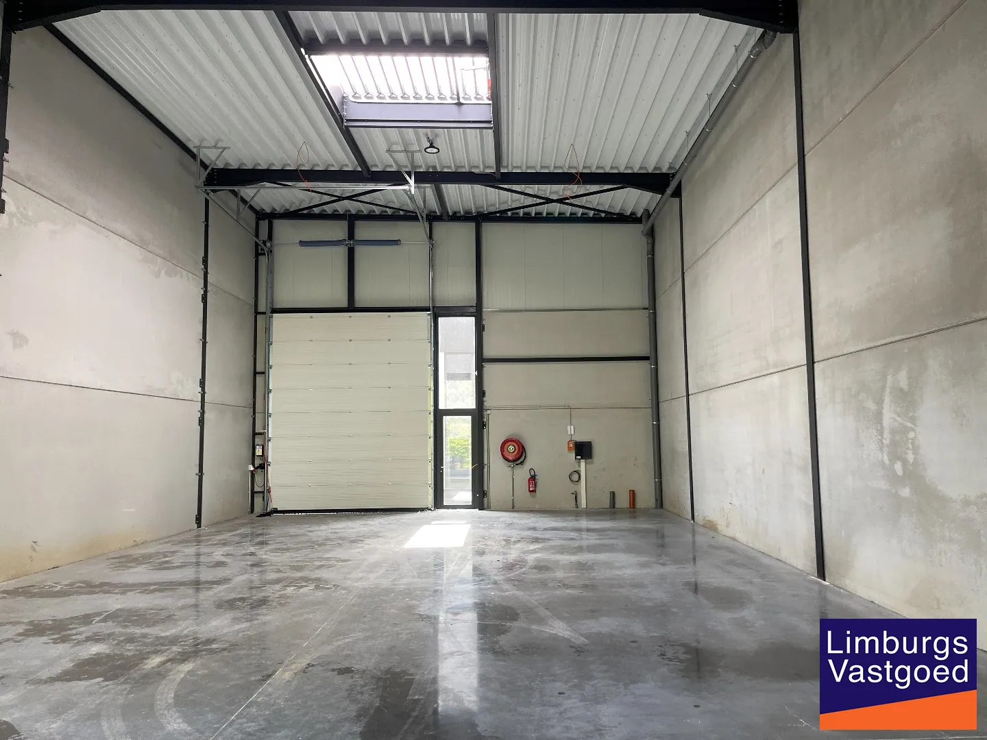 De hal is voorzien van sectionaalpoort (4m x 5m) en twee aparte toegangsdeuren, glaspartij voor natuurlijke lichtinval. Ruimte voorzien van moderne Ledverlichting.