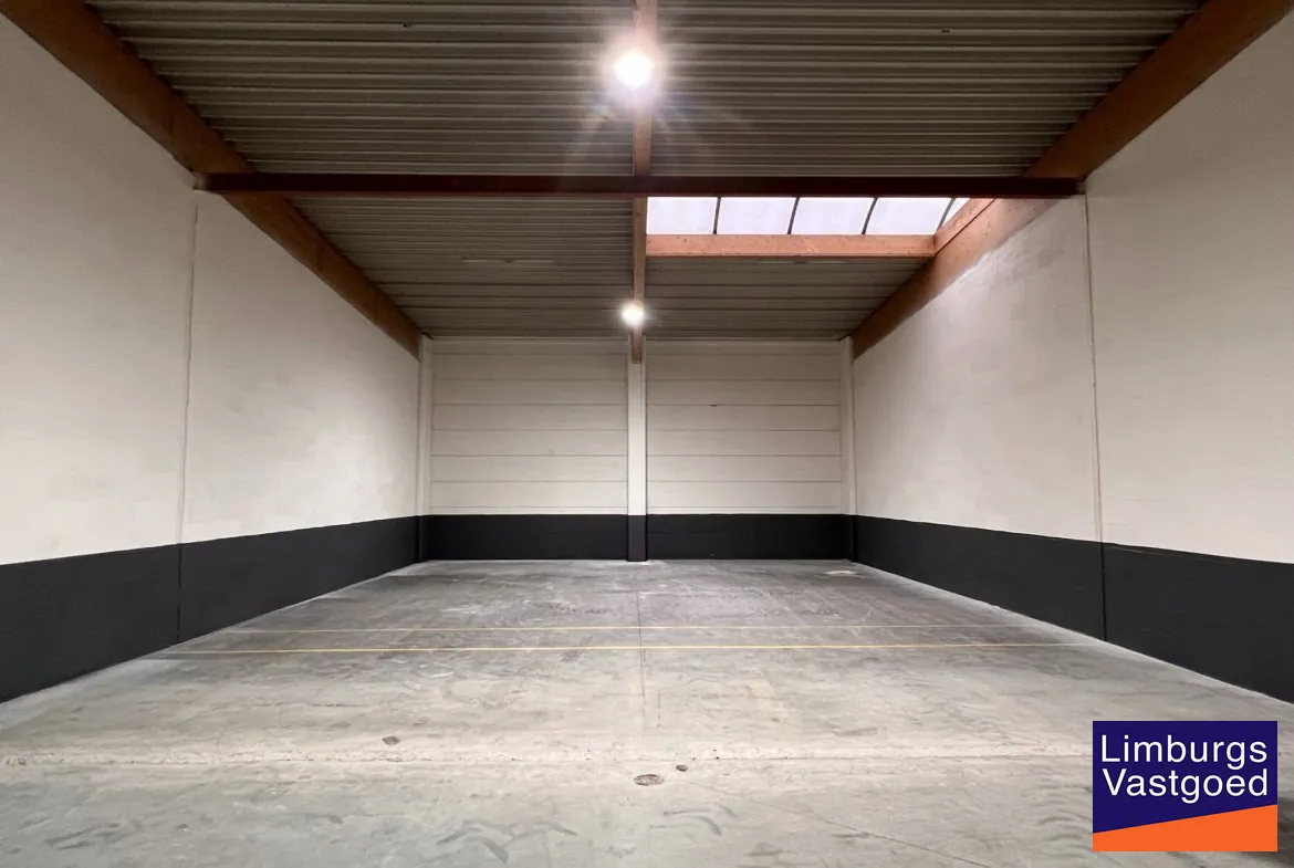 METIO - KMO UNIT 142 - 55,66 m² - Bedrijvenpark "METIO" bestaat uit KMO-units van 7 m² tot 334 m², zowel te koop als te huur. De site van 6.330 m² is zeer goed gelegen, met een vlotte verbinding naar de E313 Hasselt-Antwerpen-Luik. In 2022 werd het bedrijfsgebouw gerenoveerd en opgedeeld in opslagunits en KMO units in verschillende niveaus en formaten. De magazijnen zijn uitgerust met een sectionale poort met loopdeur, lichtstraat, LED-verlichting, wateraanvoer en elektriciteit met elk een aparte meter. Binnenwanden zijn voorzien van vlakbeton en ytongstenen. Aanwezigheid van gemeenschappelijk sanitair. Doorrijhoogte niveau 1: 3 meter; Doorrijhoogte niveau 2: 6 meter. Reclametotem met naam en brievenbus. Ruime parkeer- en manoeuvreerruimte op het terrein. Buitenopslag is beperkt mogelijk. De site is volledig omheind. Hoogspanningscabine, 2 dubbele laadpalen van Blitz Power en camera-bewaking van de gemeenschappelijke delen. Zonnepanelen kunnen gekocht of gehuurd worden. Onmiddellijk beschikbaar. Deze unit wordt tevens TE KOOP aangeboden voor € 86.829,60. Voor meer info/indelingsplannen/bezichtiging bel Dario op 0472/09.27.56 of 011/22.19.17 - dario@limburgsvastgoed.be of kijk op www.limburgsvastgoed.be