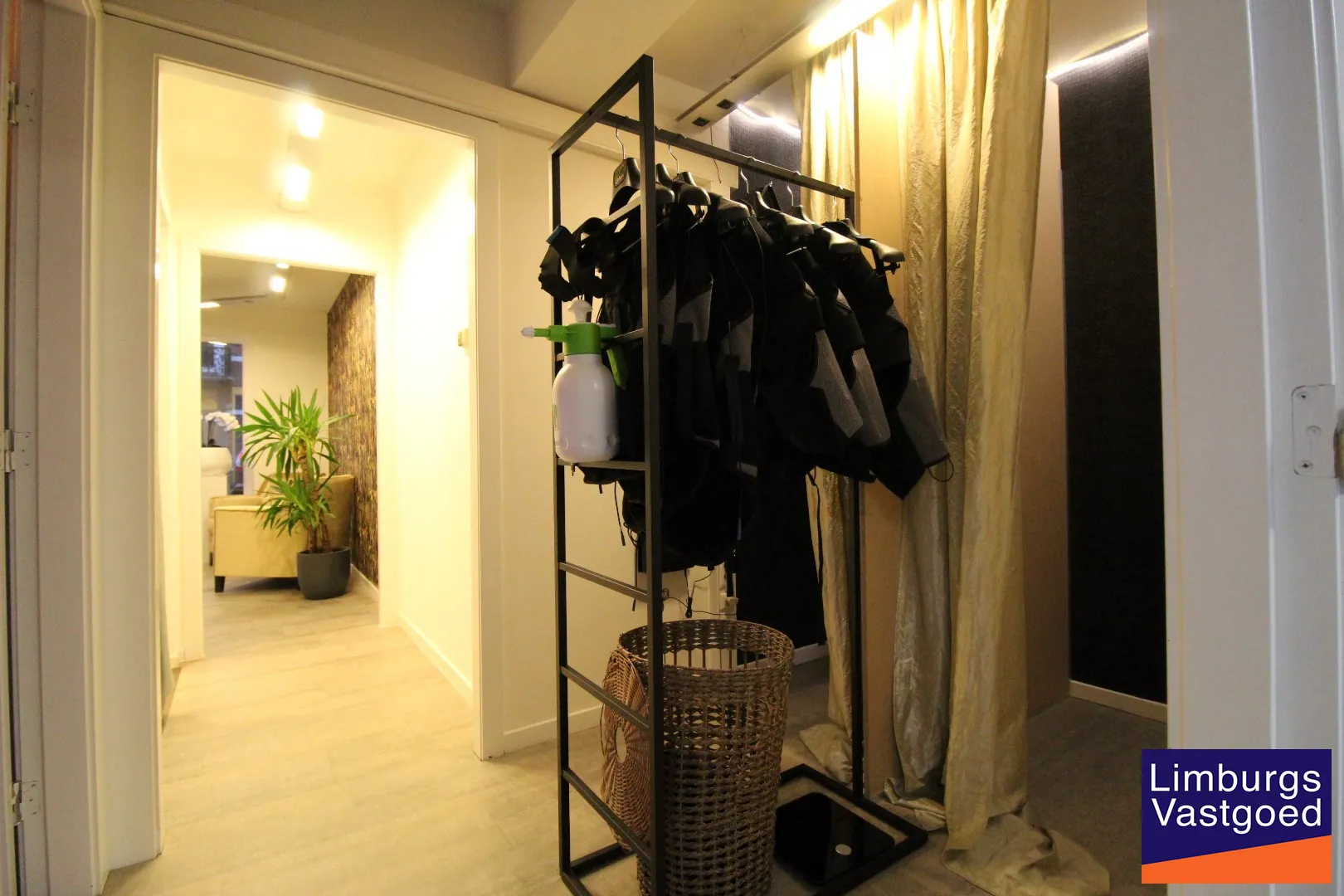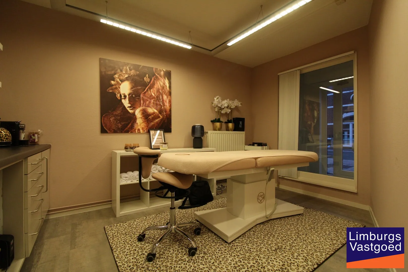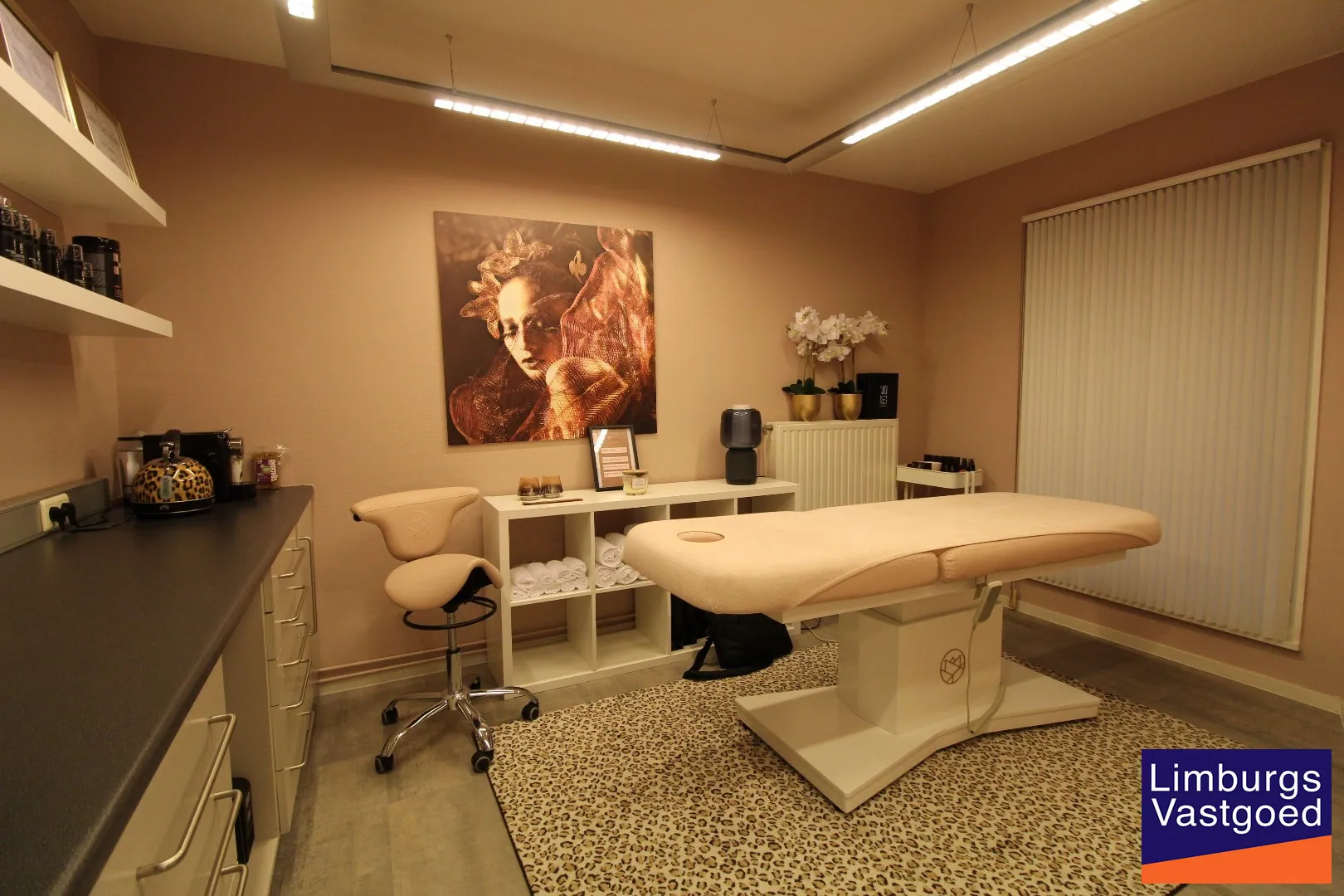 INDELING: Inkomhal met wachtzaal; Praktijkruimte met inbouwkasten en spoelbak; twee kleedkamers met toegang naar een behandelruimte/bureelruimte voorzien van inbouwkasten en sanitair; Berging.