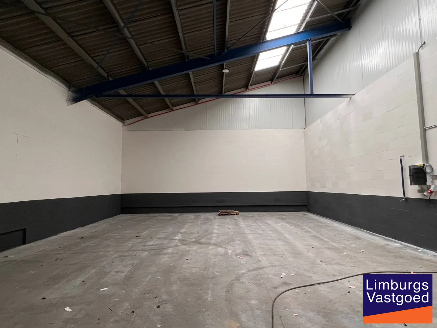 TRUDONIS - KMO UNIT 2 - 119 m² - Bedrijvenpark "Trudonis", bestaat uit nieuw opgerichte KMO-units van 42 m² tot 178 m² zowel te koop als te huur. De site van 3.625 m² is zeer goed gelegen, op minder dan 300m van de gewestweg N79, makkelijk bereikbaar met de (vracht)wagen én openbaar vervoer. De magazijnen zijn uitgerust met een sectionale poort (4 m x 4,20 m) met loopdeur, lichtstraat, wateraanvoer en 220V + 380V elektriciteit. De aanwezige betonvloer is zeer onderhoudsvriendelijk en de scheidingswanden van isolerende cellenbetonblokken tussen de units zijn geschilderd in wit met een donkerdere boord onderaan (vrije hoogte 4,50m). Aanwezigheid van gemeenschappelijk sanitair. Reclametotem met naam. Ruime parkeer- en manoeuvreerruimte op het terrein. De bedrijfsgebouwen zijn geschikt voor opslag en productie. Onmiddellijk beschikbaar. Industriële omgeving. Unit 2 wordt tevens TE HUUR aangeboden voor € 627,73,-/maand. Voor meer info/indelingsplannen/bezichtiging bel Dario op 0472/09.27.56 of 011/22.19.17 - dario@limburgsvastgoed.be of kijk op www.limburgsvastgoed.be