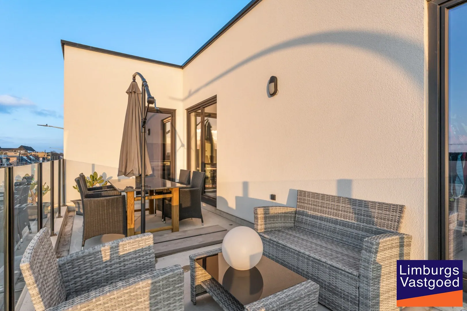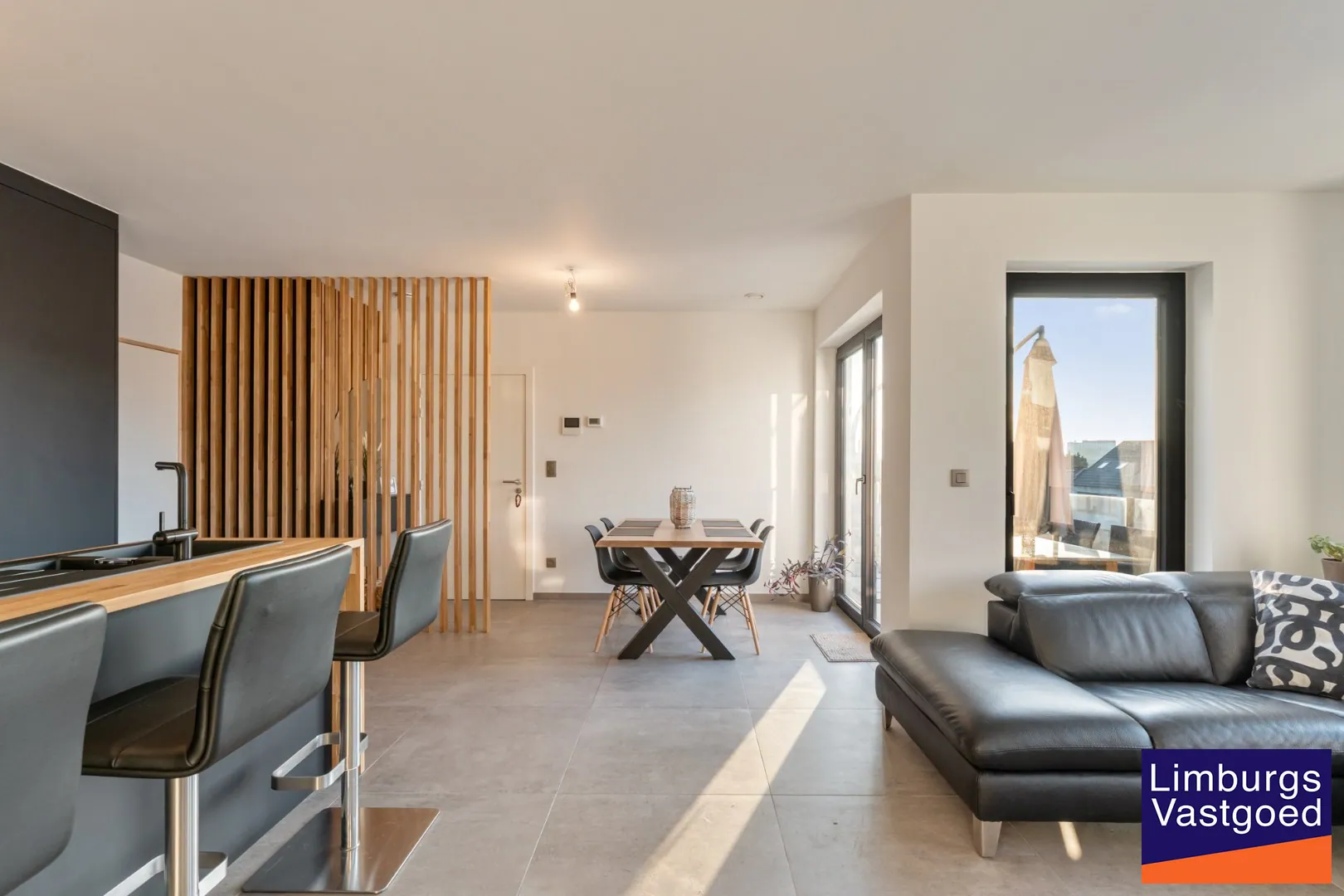 INDELING: Lichtrijke leefruimte met toegang tot het ruim terras; Hoogwaardig afgewerkte keuken met aansluitend de eethoek; Nachthal met apart toilet; Wasplaats/berging met aansluiting wasmachine; Badkamer met inloopdouche, ligbad en wastafel; 3 slaapkamers. Het appartement beschikt over vloerverwarming.