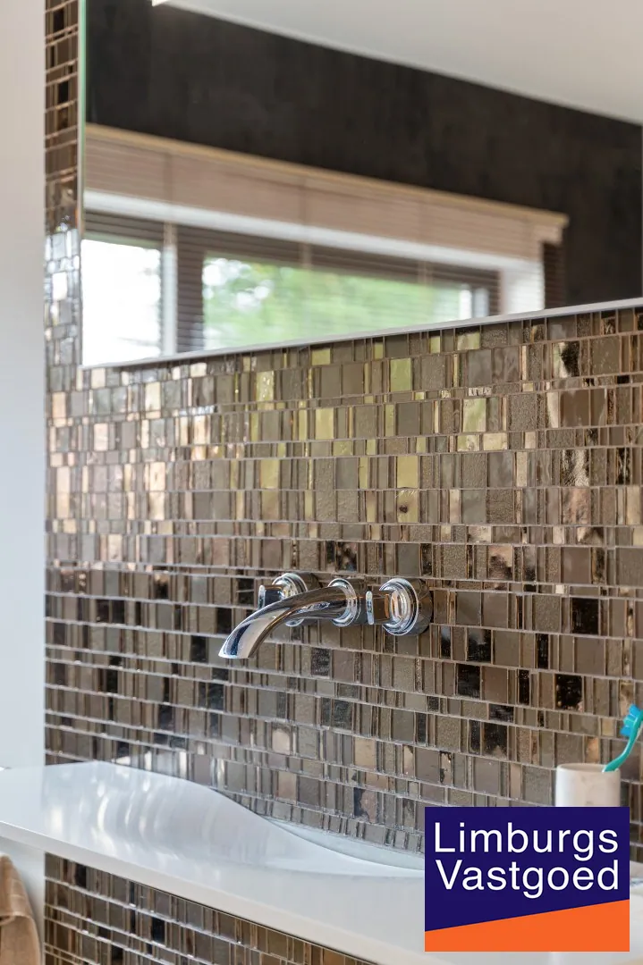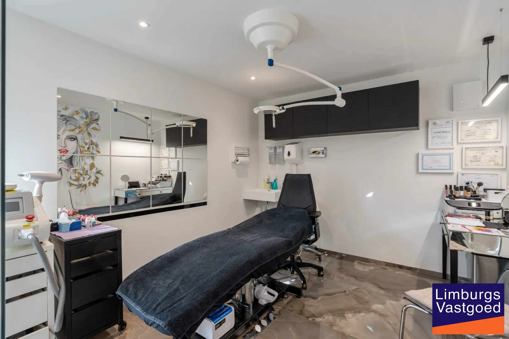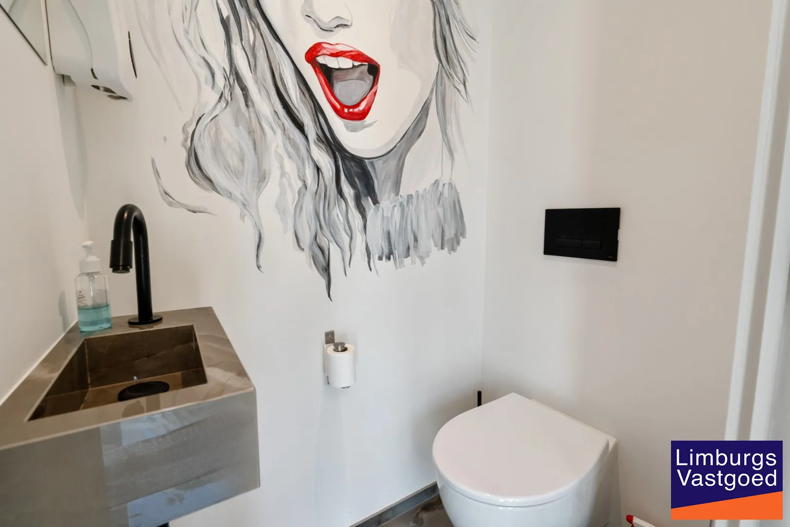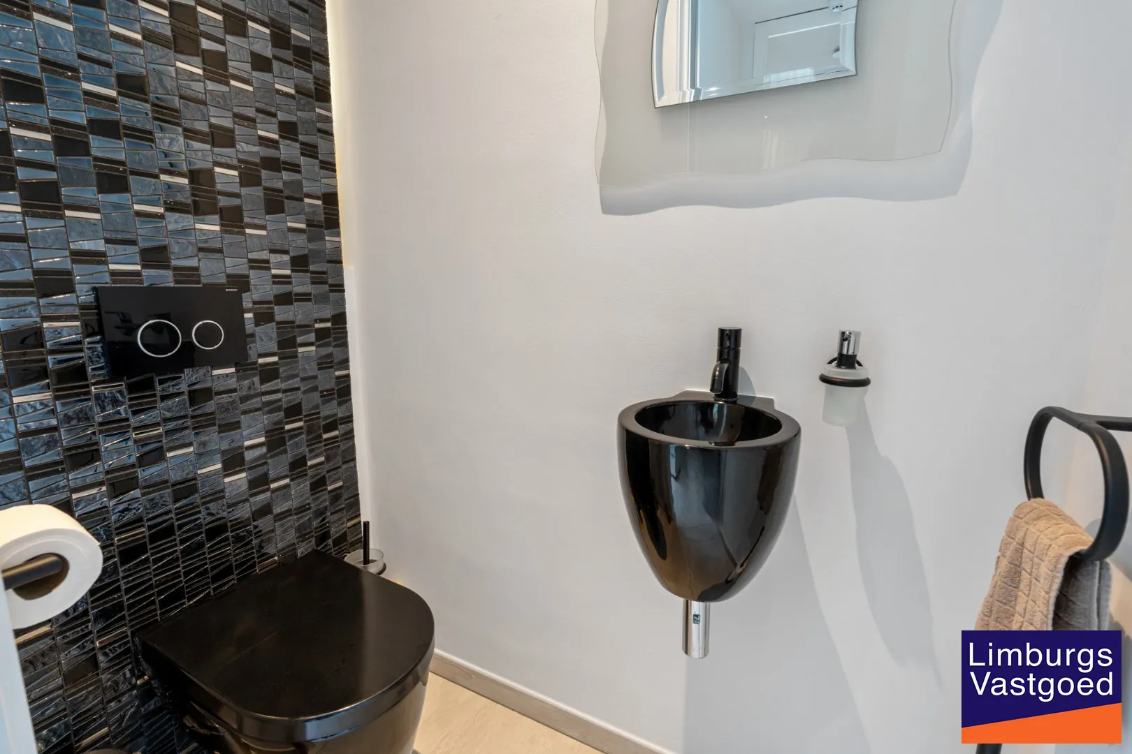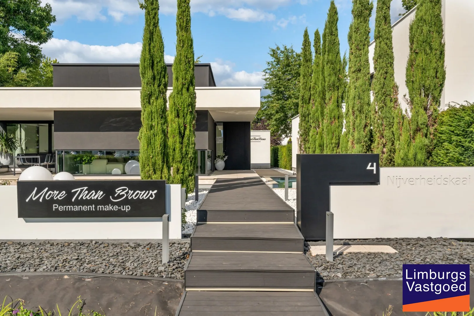 INDELING: Ruime inkomhal met apart toilet en inbouwkasten; Lichtrijke leefruimte met een open designkeuken voorzien van inbouwkasten, een werkblad en keukentafel in Corian en high-end toestellen (Siemens en Küppersbusch) waaronder een Quooker kraan en vaatwasser op manshoogte; De leefruimte met grote raampartijen loopt naadloos over in de onderhoudsvriendelijke buitenruimte ontworpen door Landschapsarchitect Willy Reynders. De buitenruimte is Zuid-georiënteerd en voorzien van een ruim overdekt terras van ong. 30m² afgewerkt met Carrera natuursteen en een zwembad met spectaculair uitzicht over het Albertkanaal. De villa beschikt over 3 slaapkamers waaronder een royale master bedroom met dressing; Elke slaapkamer is voorzien van inbouwkasten; Badkamer met inbouwkasten, een ligbad, ruime inloopdouche en lavabo. Volledig afgescheiden praktijkruimte (18m²) met apart toilet, hoogwaardig afgewerkt met natuurstenen vloer en airco (warmen/koelen). Beklinkerde parking.